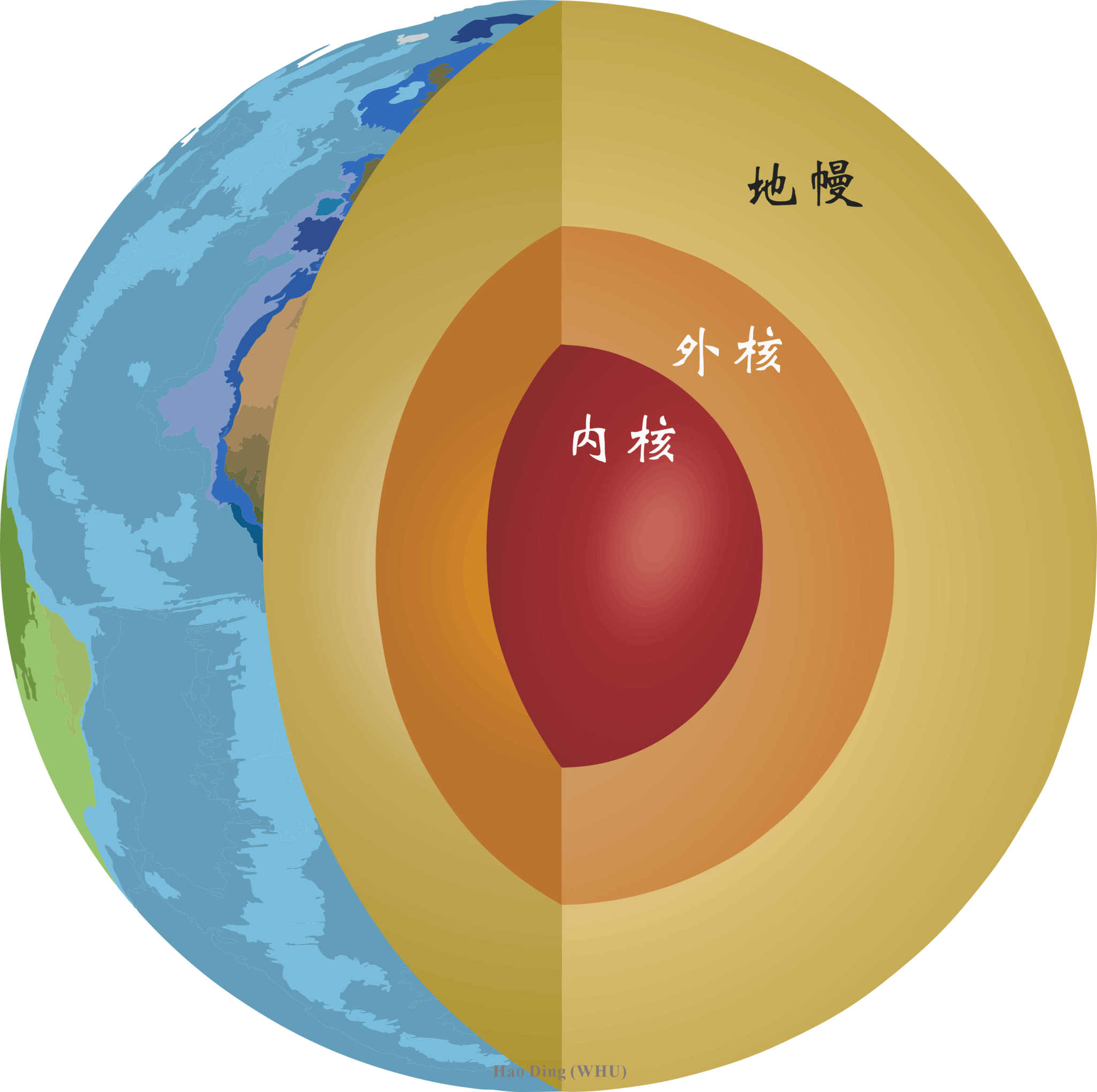 图1. 地球内部分层示意图。 (来自: 丁浩 自绘)