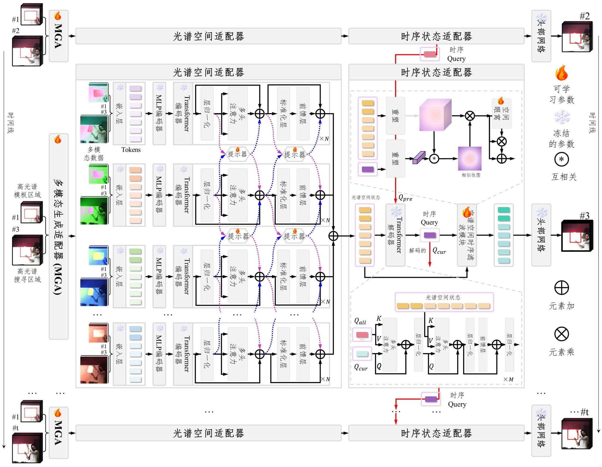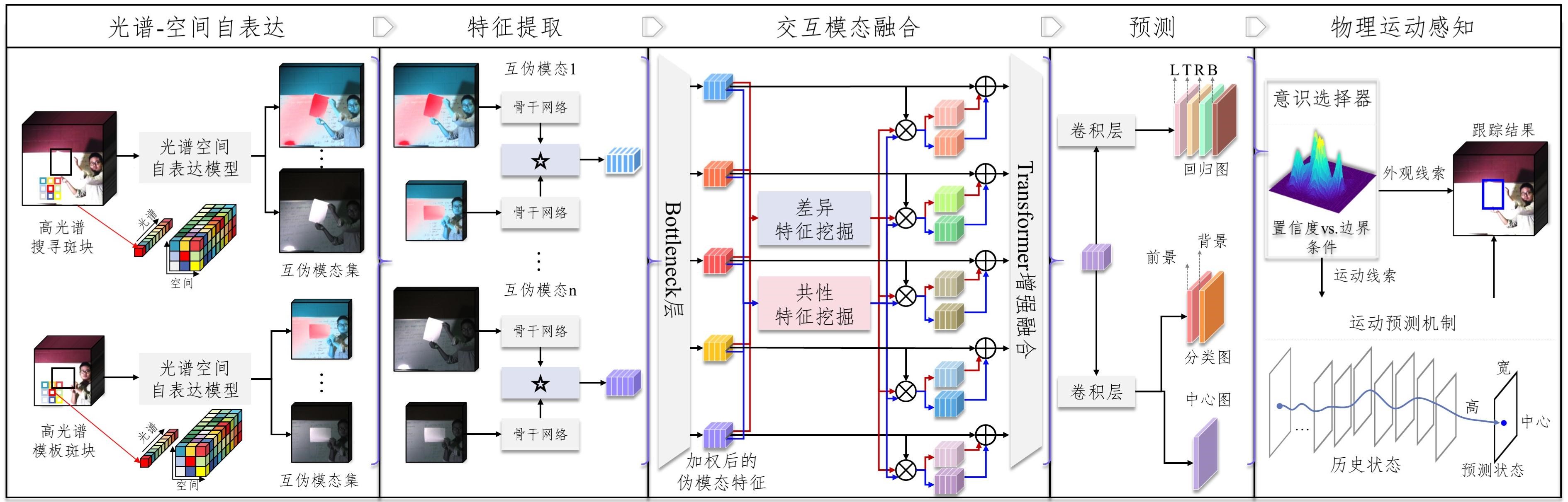 图 1. 融合材质属性与运动线索的高光谱视频目标跟踪模型