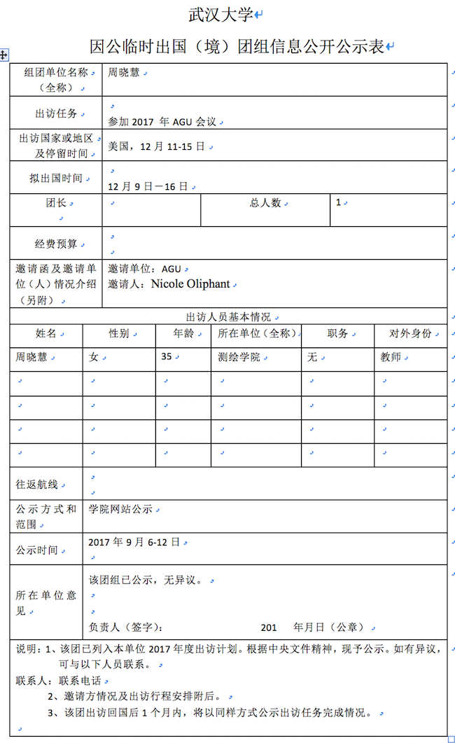 因公临时出国(境)信息公示