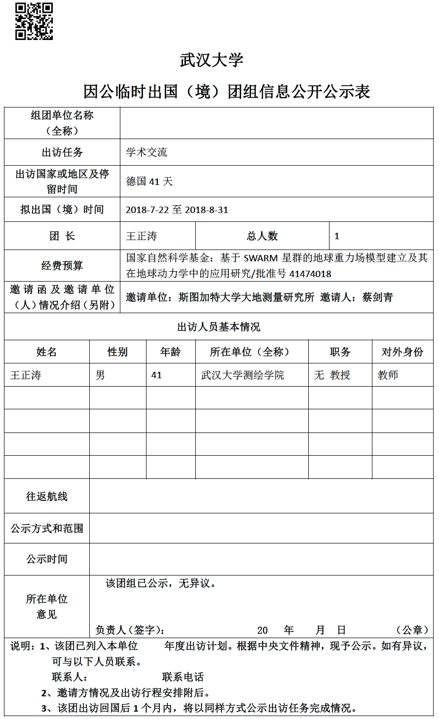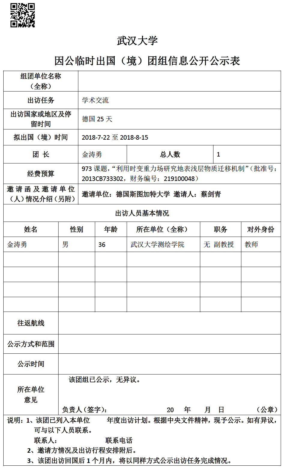 因公临时出国(境)信息公示