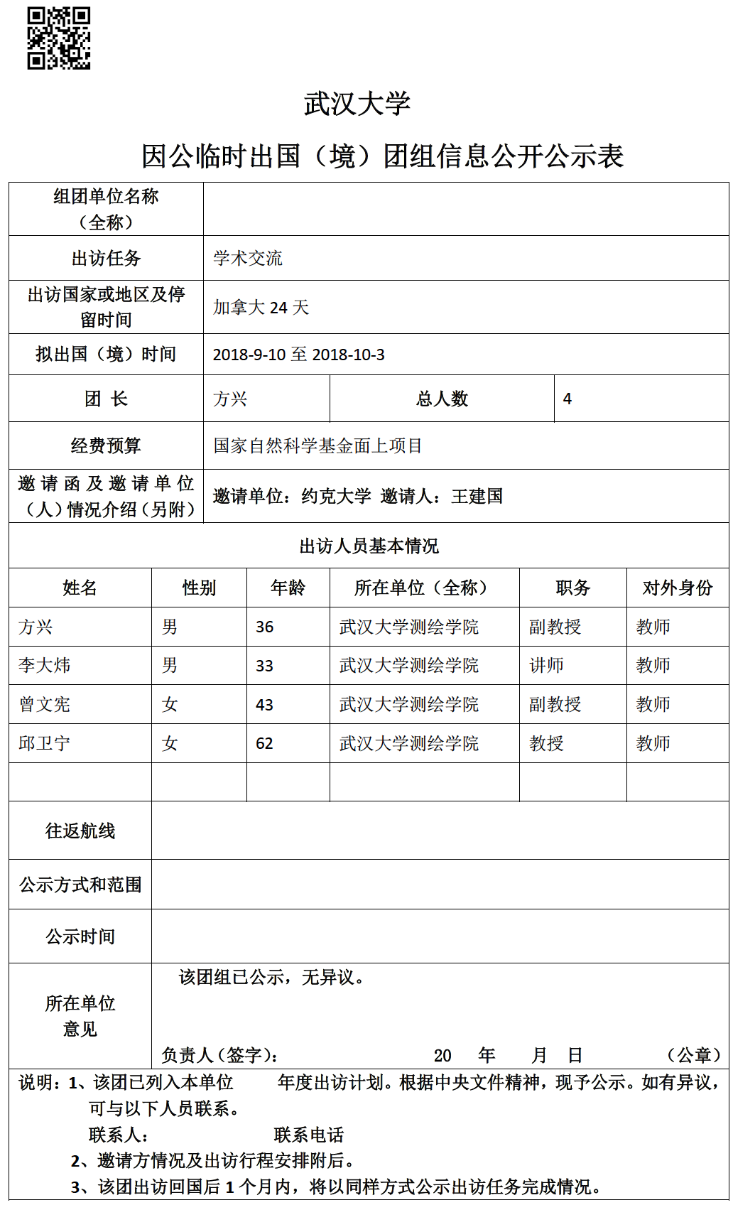 因公临时出国(境)信息公示