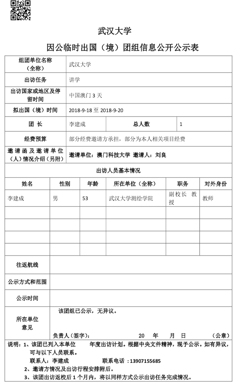 因公临时出国(境)信息公示