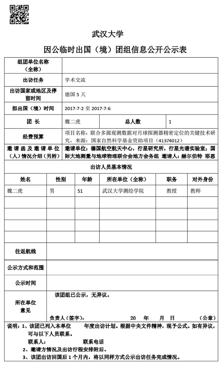 因公临时出国(境)信息公示