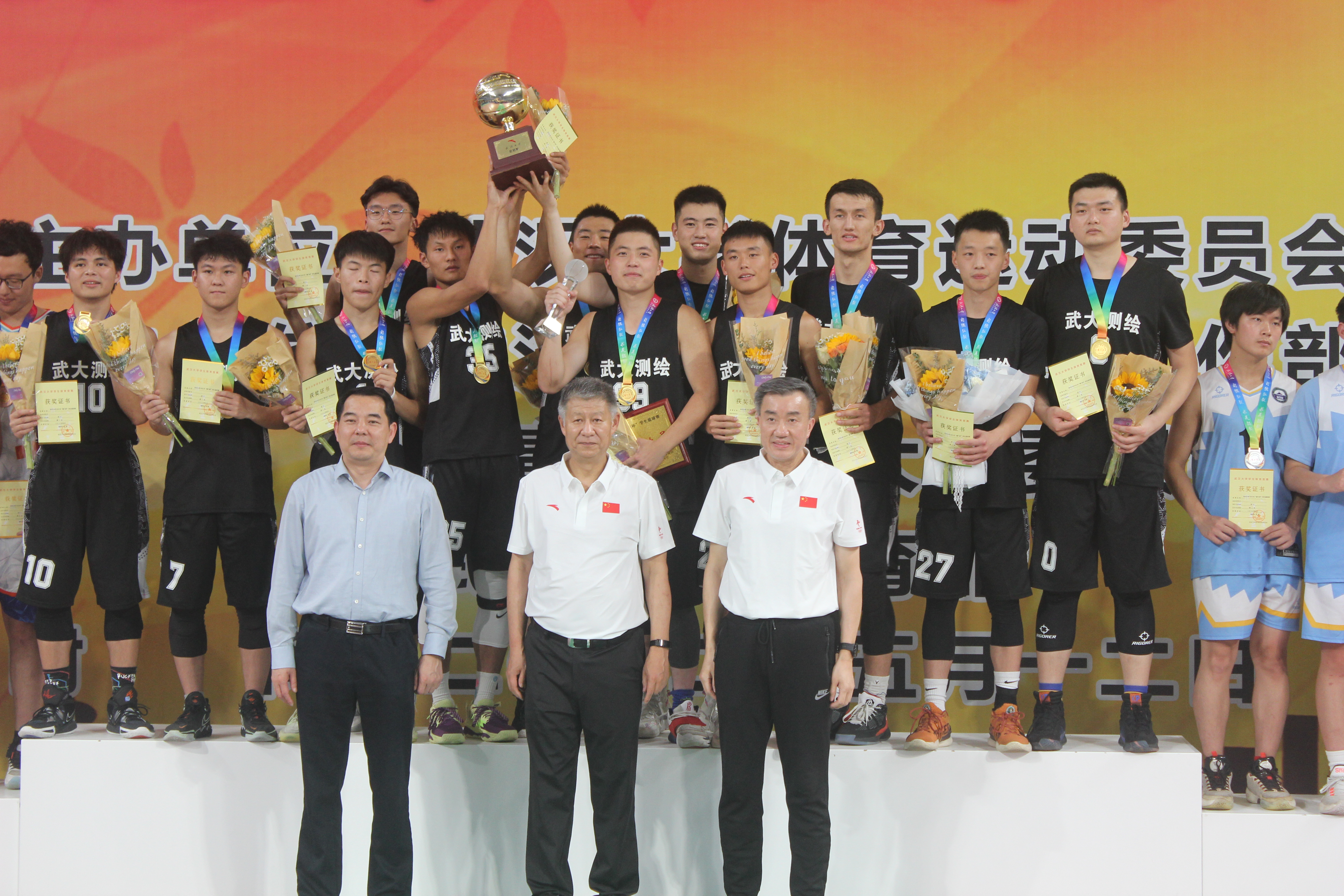 5月12日,91大神 2022年“腾飞杯”篮球赛决赛在卓尔体育馆举行,91大神 男子篮球队勇夺桂冠!91大神 队员刘峥嵘荣获2022年度“腾飞杯”男子最佳运动员!校党委书记韩进、校长窦贤康、副校长周叶中、校党委副书记屈文谦等校领导以及院党委书记晏金柱、院长姚宜斌、院党委副书记郭重奎和胡俊英、副院长邹进贵等学院领导现场观赛。