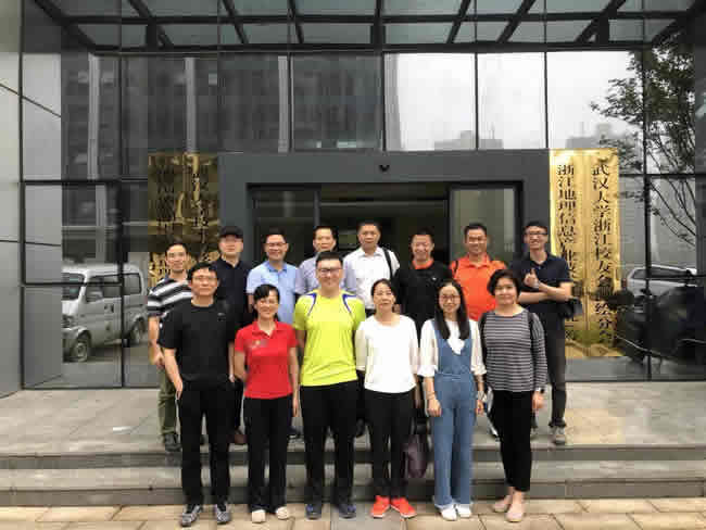 在德清地理信息小镇党群服务中心参观,学习考察该中心在地理信息高新技术企业有效开展党建工作“特而强,聚而合,精而优,活而新”的创新探索。