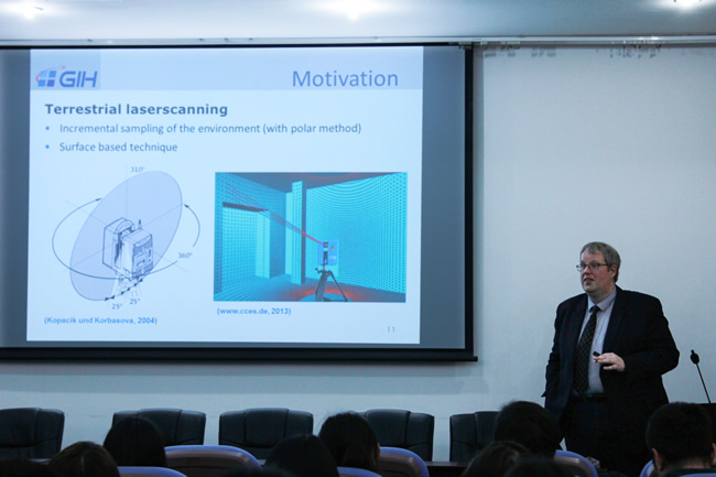 11月30日,汉诺威大学土木工程与大地测量学院教授,工程测量研究所所长Prof. Dr .- Ing.Ingo Neumann应邀来91大神 作了题为“Newest developments in kinematic laser canning for industrial applications”的学术报告。