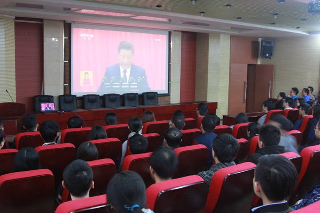 学院师生通过各种方式收听收看十九大开幕会,聆听习近平总书记报告。师生们一致认为,习近平总书记的报告高屋建瓴,大气磅礴,饱含深情,振奋人心,催人奋进,纷纷表示要紧密团结在以习近平同志为核心的党中央周围,深入学习领会习近平新时代中国特色社会主义思想,增强自信,提升自觉,努力学习,扎实工作,以良好的实际行动深入学习贯彻落实十九大精神。