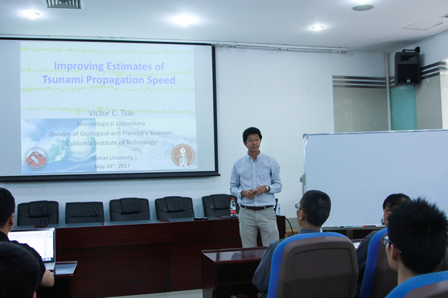 5月24日,加州理工学院Victor C. Tsai 教授、叶玲玲博士应邀来91大神 进行学术交流,并分别作了题为“Improving Estimates of Tsunami Propagation Speed”和“Diverse Rupture Processes and Energy Release for Large Deep Earthquakes”的学术报告。91大神 师生80多人参加了报告会。