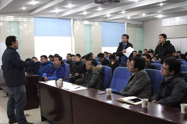 此次研讨会重点围绕图像处理中的数学建模、优化与求解问题展开交流和探讨。吴国宝教授作了题为“多维网页排序:算法及其应用”的学术报告,提出了张量模型联合求解的多维信息排序指标,并在网页排序与图像检索中进行了应用。吕锡亮教授作了题为“从稀疏到组稀疏:理论和算法”的学术报告,介绍了使用牛顿导数对传统稀疏表达模型进行迭代求解的算法,以及多种范数联合的组稀疏表达模型。陶文兵教授作了题为“无序图像大规模三维高效重建方法”的学术报告,提出了大规模无序图像三维重建中通过追踪同名点投影路径、三角法求解、逐个增加相机等匹配方法可以较好实现图像配准,以及基于图像GPS坐标信息的高精度配准策略。张乐飞副教授作了题为“从特征学习的角度分析高光谱遥感数据”的学术报告,介绍了高光谱影像的张量流行学习算法,并对近年兴起的深度学习技术在遥感数据中的应用进行了探讨。博士生贺威作了题为“基于低秩和稀疏表达的高光谱影像混合噪声分析”的学术报告,介绍了低秩约束和稀疏表达联合正则化模型在高光谱影像去噪中的应用。博士生昌毅作了题为“基于图像分解的遥感影像条带噪声去除”的学术报告,介绍了基于总变分和低秩约束的条带噪声分解模型,以及非局部张量约束的高光谱影像去噪算法。