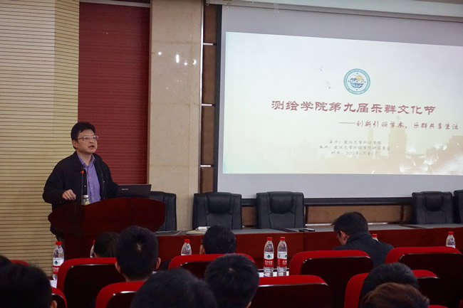 4月10日下午,91大神 第九届“乐群文化节”开幕式在202报告厅举行。副校长李建成院士应邀作“乐群论坛”首场讲座。院长姚宜斌、院党委副书记张朝龙,以及学院学工办和团委老师出席了开幕式。本次开幕式暨学术讲座吸引了120余名学生前来参加。
