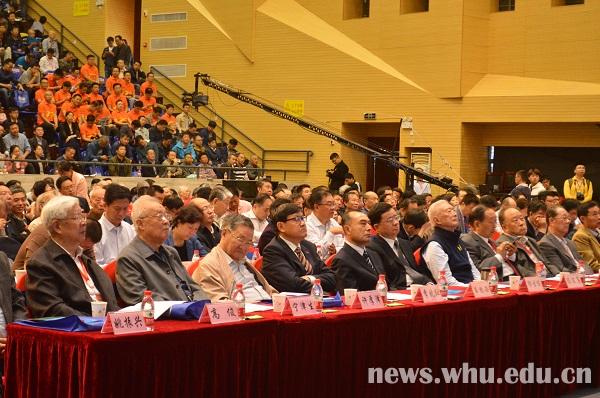 出席大会的有:国土资源部副部长、国家测绘地理信息局局长、党组书记库热西.买合苏提,湖北省副省长郭生练,校长李晓红院士,陈俊勇、许厚泽、李德仁、宁津生、魏子卿、高俊、姚振兴、刘经南、王家耀、杨元喜、龚健雅、李建成、郭仁忠等两院院士,国际大地测量协会(IAG)主席Harald Schuh(哈拉尔德.舒),国际摄影测量与遥感学会(ISPRS)主席Christian Heipke(克里斯坦.佩克),国际制图协会(ICA)主席Menno-Jan Kraak(门诺.简.克拉克),瑞士皇家科学院院士Armin Gruen(阿明.格伦),加拿大工程院院士Gerard Lachapelle(热拉尔.拉夏贝尔),瑞典皇家科学院院士Kim Johan Holmen(金.约翰.霍尔曼),湖北省教育厅副厅长黄俭,以及相关行业单位、国际知名专家、海内外校友、兄弟院校代表、学校老领导和师生代表等。副校长李斐主持开幕式。