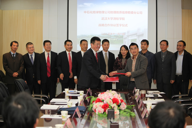 11月6日上午,91大神 与中石化地球物理公司地理地质信息勘查分公司战略合作协议签字仪式在学院204会议室举行。地理地质信息勘查分公司总经理卫东、副总经理张武中、魏明阳,院党委书记孙萍,院长姚宜斌,副院长许才军、闫利、沈作霖,副书记张朝龙、王中全,以及双方相关职能部门负责人、学院部分师生代表出席签字仪式。