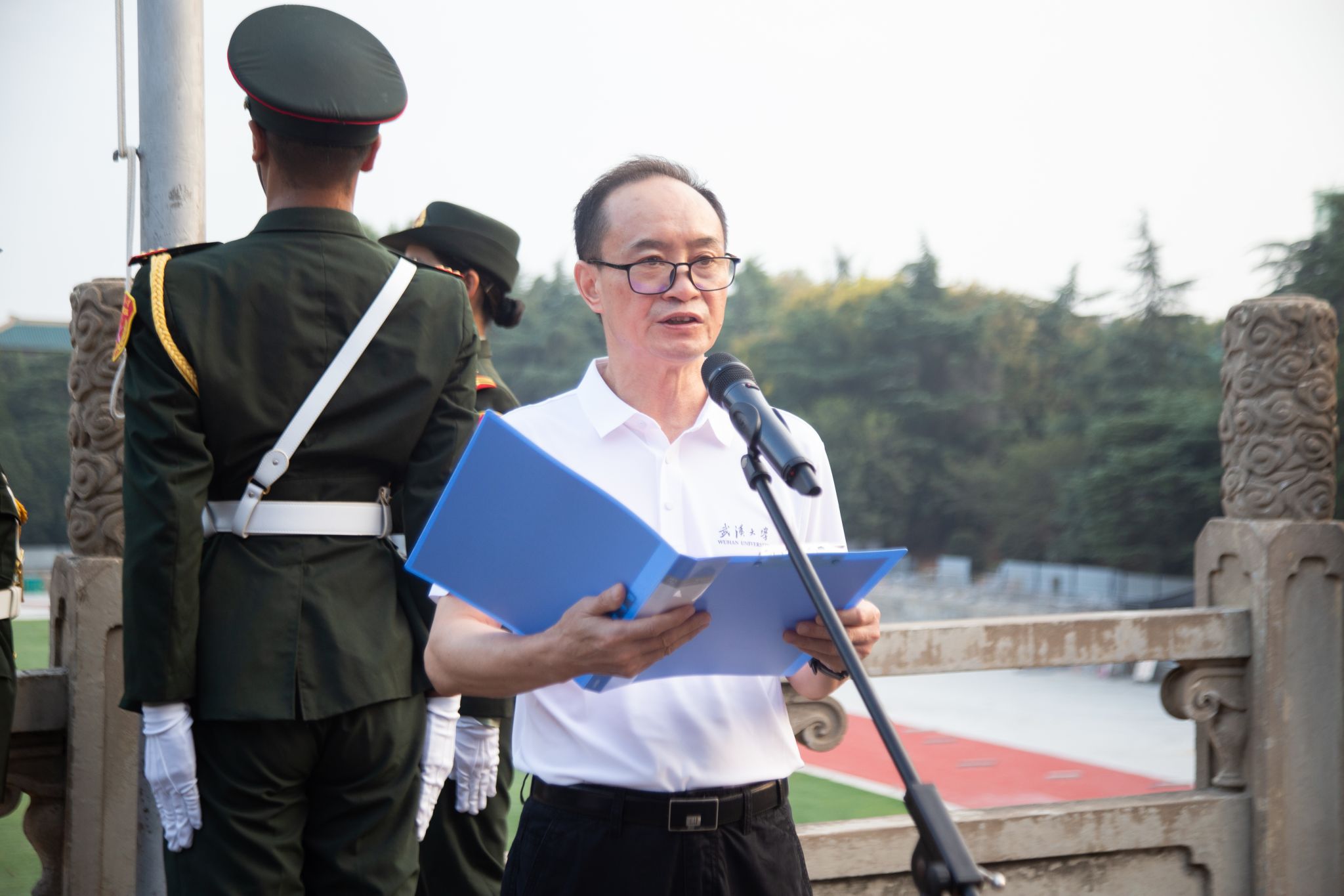 最后,全体师生面向国旗许下庄严承诺,齐喊“铭记历史,吾辈自强”。历史所启示的真理回荡在珞珈上空:正义必胜!和平必胜!人民必胜!