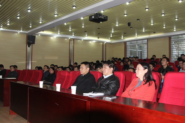 柳正权教授纵论中外古今法治思想和法治实践的发展历程后,重点解读了十八届四中全会的四个新意:一是党中央第一次将法治建设作为单次会议主题,表明党中央对加强法治建设的坚定决心;二是强调了改善党的领导与加强法制建设的有机统一;三是强调各级政府聘用法律顾问,提高决策的科学性、合法性;四是通过设立巡回法院等方式重视司法改革。他强调,中国的法治建设既吸收了西方的法治思想,又保留了中国传统的法治精神。他表示,在十八届四中全会审议通过的《中共中央关于全面推进依法治国若干重大问题的决定》和习近平总书记重要讲话精神的指导下,中国的法治建设将取得新进展。师生党员们听得认真,会场不时响起阵阵笑声、掌声。