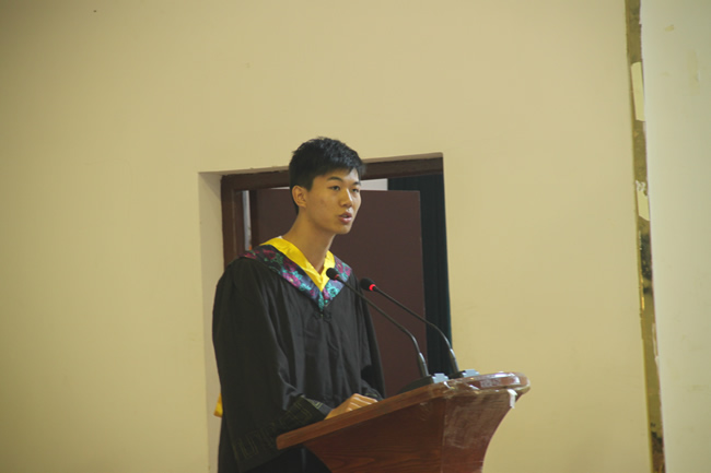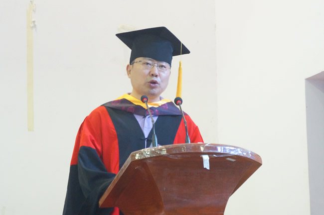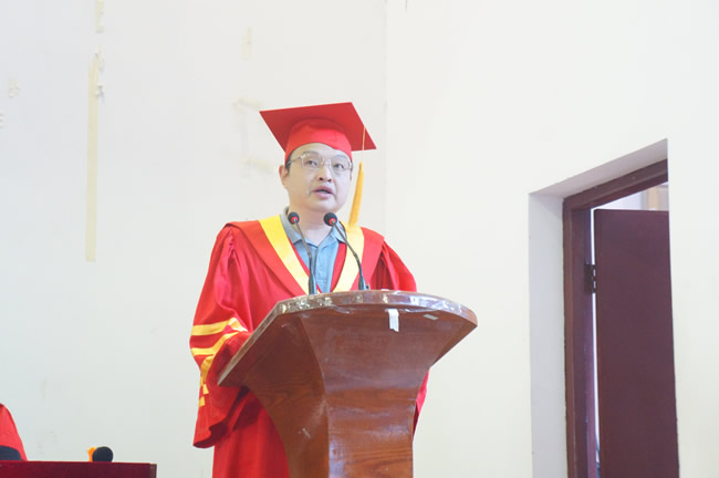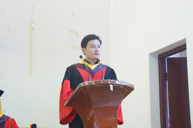 在庄严的奏唱国歌仪式之后,王中全宣读了优秀毕业生表彰决定。随后,丁浩、王祁特、杨婧、张小红教授分别代表毕业研究生、本科毕业生、在校生、教师依次发言,畅谈成长体会,分享心路历程,共叙师生情谊,憧憬美好未来。