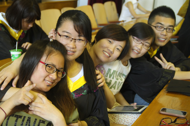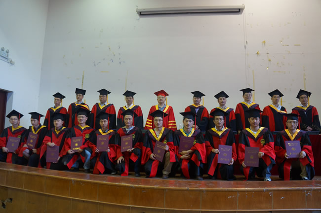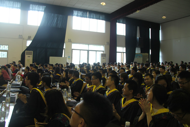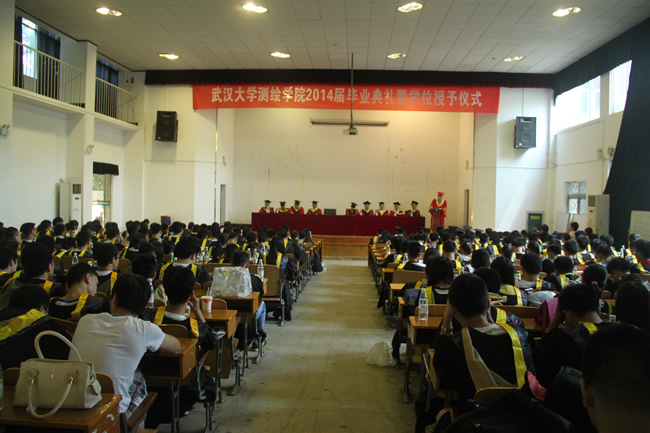 徐亚明宣读学位授予决定。紧接着,毕业生依次走到台上,接受学位授予。李建成、徐亚明、郭际明、闫利、申文彬、黄声享、花向红、罗志才、姚宜斌、张小红等10名教授郑重地将一名名毕业生学士帽上的流苏从帽檐右前侧移到左前侧中部,并颁发学位证书。毕业生纷纷与导师、同学合影留念。部分毕业生的家长也特地赶来见证这一难忘时刻。