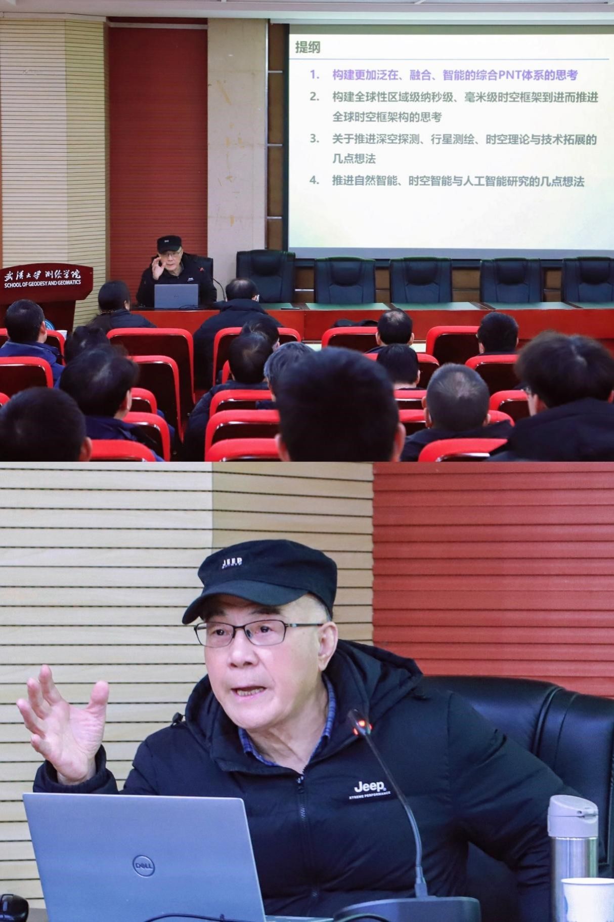 1月18日下午,在202报告厅召开了全院教职工大会。大会邀请了中国工程院院士、著名大地测量与卫星导航专家刘经南先生,为全院师生做题为“关于测绘学科发展的几点思考”的学习辅导报告。学院领导及全体教职工齐聚一堂,认真听取报告,并共同回顾了过去一年的工作成果和展望学院未来的发展蓝图。会议由姚宜斌院长主持。