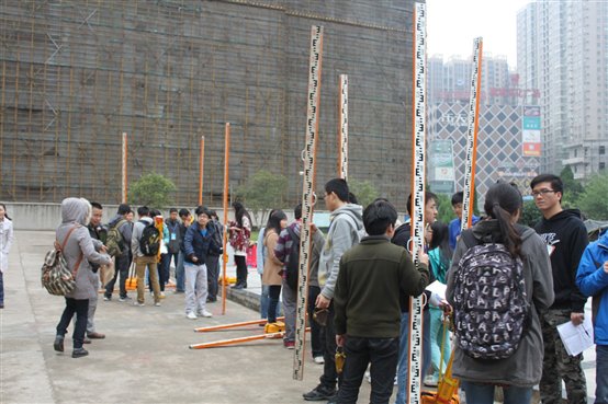 当天,寒风来袭,气温骤降,便这丝毫没有影响参赛学生的热情,现场裁判不畏寒冷,在风中坚守岗位。此次比赛内容分为导线测量和水准测量两个部分。在18名专业老师和20余名学生志愿者的组织协调下,比赛从早上7点半正式开始,持续到下午5点半结束,紧张而有序。地球物理组的比赛也同时在学院实验室和天文台进行。