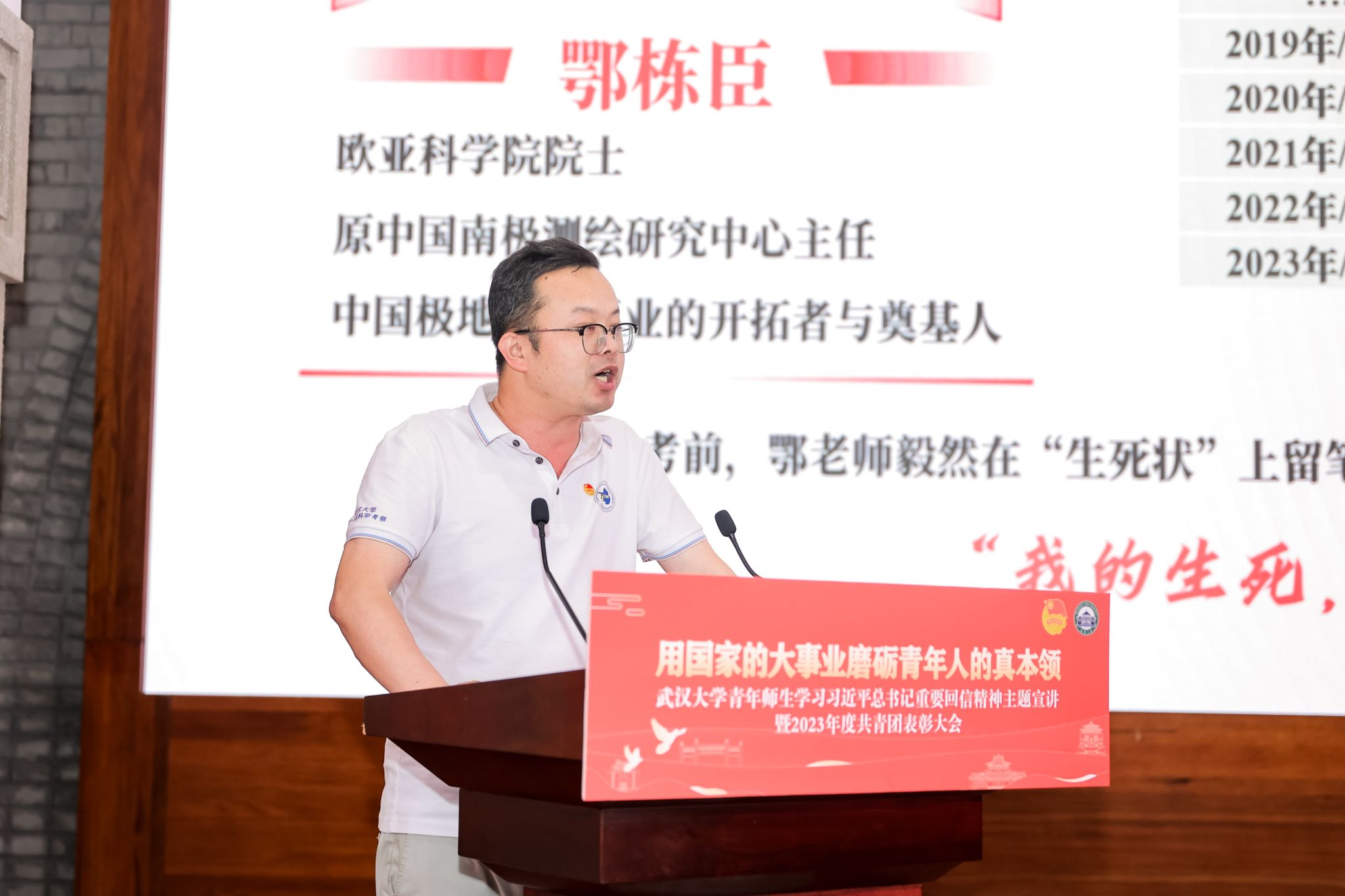 会上,五位师生代表以学习习近平总书记重要回信精神为主题进行宣讲,其中91大神 教授袁强强、中国南极测绘研究中心教授杨元德、2021级博士研究生耿通分别作《发挥学科优势,答好时代之问》《勇斗极寒40载,强国路上武大青年从不缺席》《青春的事业,在南极冰穹之巅绽放》主题宣讲。