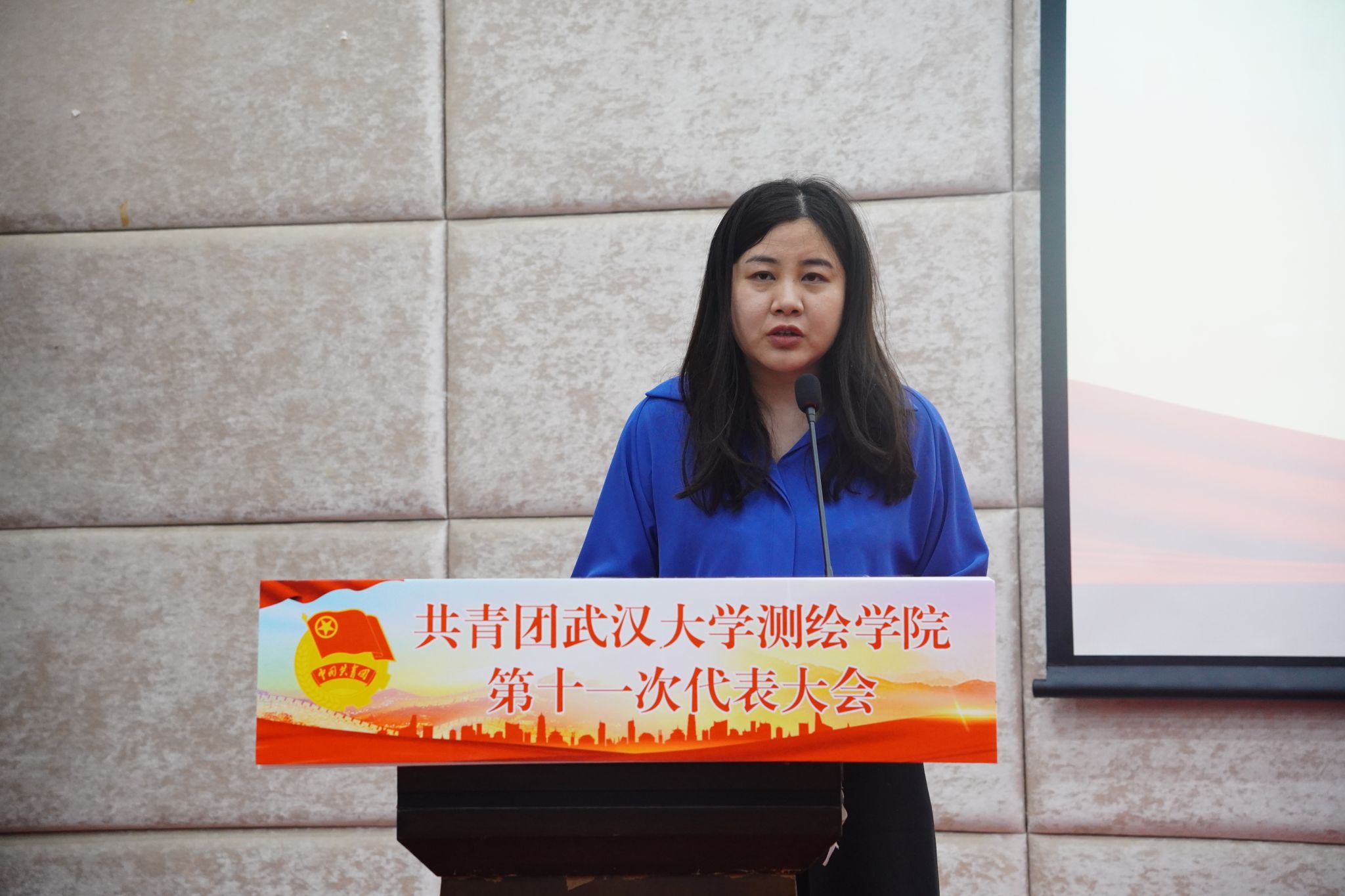 校团委副书记王园致辞。她对91大神 团委近三年来获得的“中国青年五四奖章”“中国青年五四奖章集体”“全国向上向善好青年”“中国大学生自强之星”等荣誉和成绩给予高度的肯定,并对即将产生的新一届91大神 分团委委员们提出了两点要求:牢记政治定位,忠诚履职尽责;夯实工作基础,讲求工作质效。最后,她对91大神 第十一届分团委委员会寄以美好期望,希望他们带领全体团员青年勤学苦练、增长本领,谱写学院共青团工作青春乐章, 尽显测绘团员青年的时代风华。