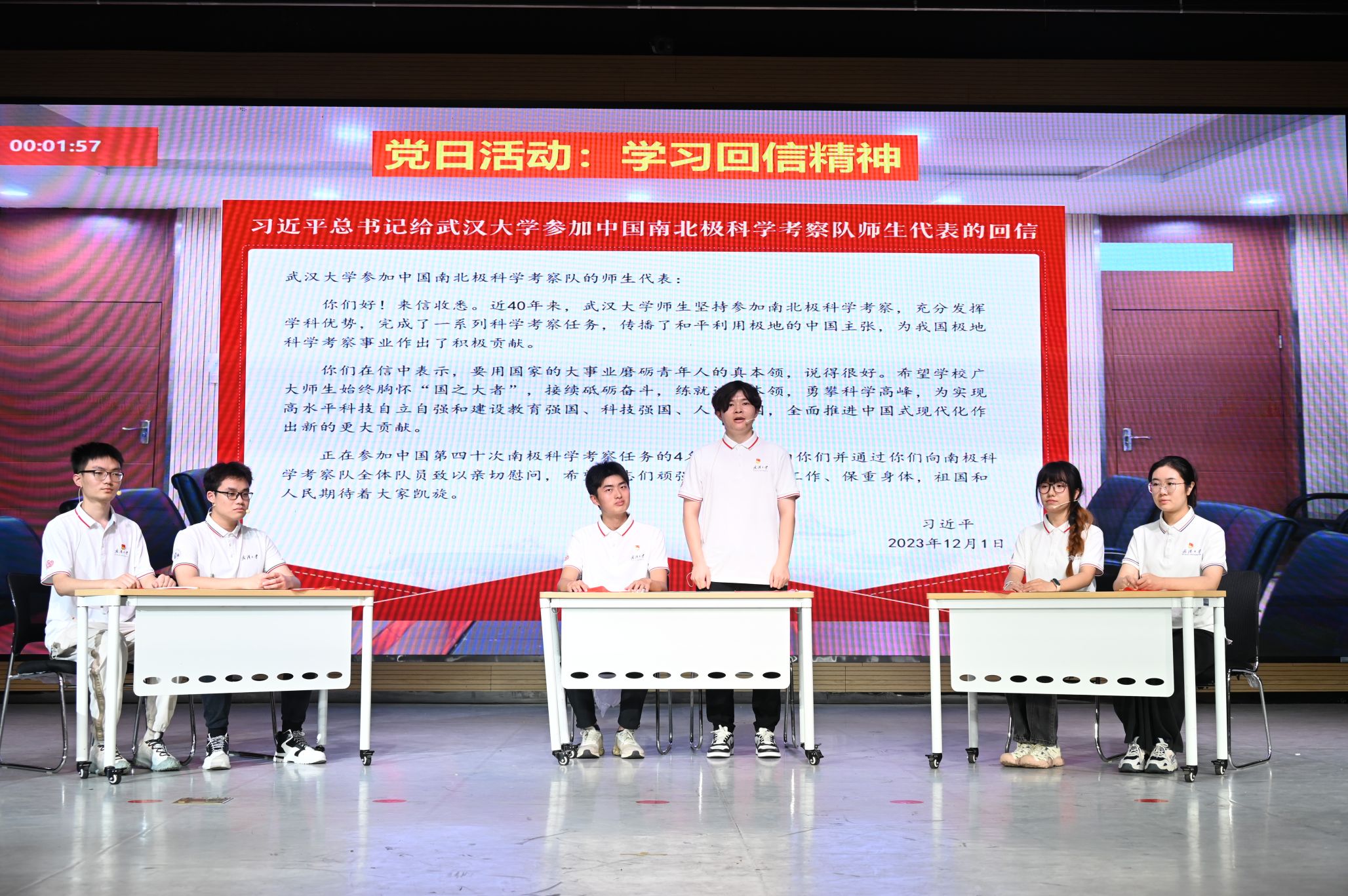 在比赛过程中,联合支部策划编排的情景剧《勇踏极地征程,共筑科考使命》,围绕“学习贯彻习近平总书记给91大神 参加中国南北极科学考察队师生代表的重要回信精神”这一主题,不仅展现了支部同志与南极科考队员对科考工作的热切关注和积极响应,也生动展现了他们对习近平总书记重要回信精神的深入学习和实践,以实际行动践行了习近平总书记的殷切期望。