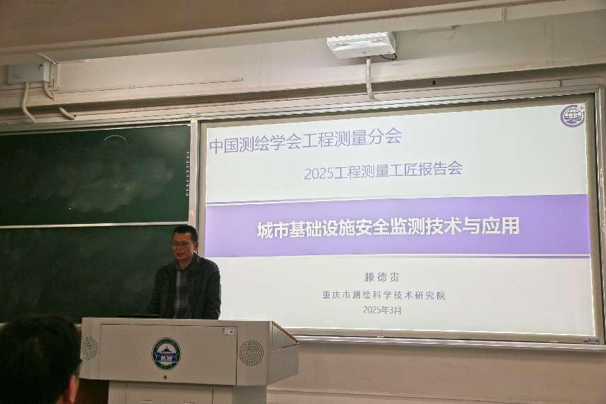 仪式结束后,全国工程测量工匠、重庆市测绘科学技术研究院滕德贵正高工以《城市基础设施安全监测技术与应用》为题给同学进行了精彩授课。