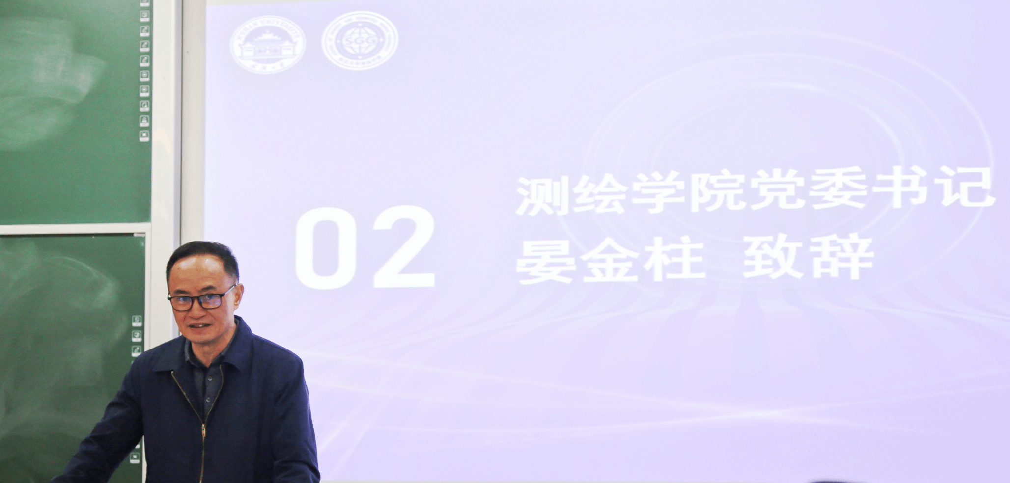 晏金柱书记致辞。晏书记对中国测绘学会工程测量分会的大力支持表示感谢。他强调,在智能化测绘时代,学院邀请全国工程测量工匠进课堂,一方面是为了开阔同学们的视野,勉励同学们认真研修,进一步提升同学们解决实际工程问题的能力;另一方面是希望培养一批精于工、匠于心、品于行的青年学子和引领下一个十年的工程测量领军者。