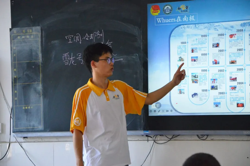 “我们该讲些什么才能真正让孩子们有所收获?”这是支教队在筹备课程时一直在思考的问题。为此,支教队按高、中、低年级三类为不同年龄学生划分班级,确定主要负责队员,建立对应的教学组。根据队员们的不同专业优势,开设诸如南极科普、心理辅导、折纸、安全教育等充满特色的课程。“最令我印象深刻的一堂课是向孩子们宣讲习近平总书记给91大神 参加中国南北极科学考察队师生代表的重要回信精神”,2024年向日葵支教队队长谢峥分享道。从科考船到测绘专业的介绍,从科技装备的展示到“重要回信精神”内涵阐释,“用国家的大事业磨砺青年人的真本领”的谆谆嘱托通过支教队的分享在孩子们心中生根发芽。