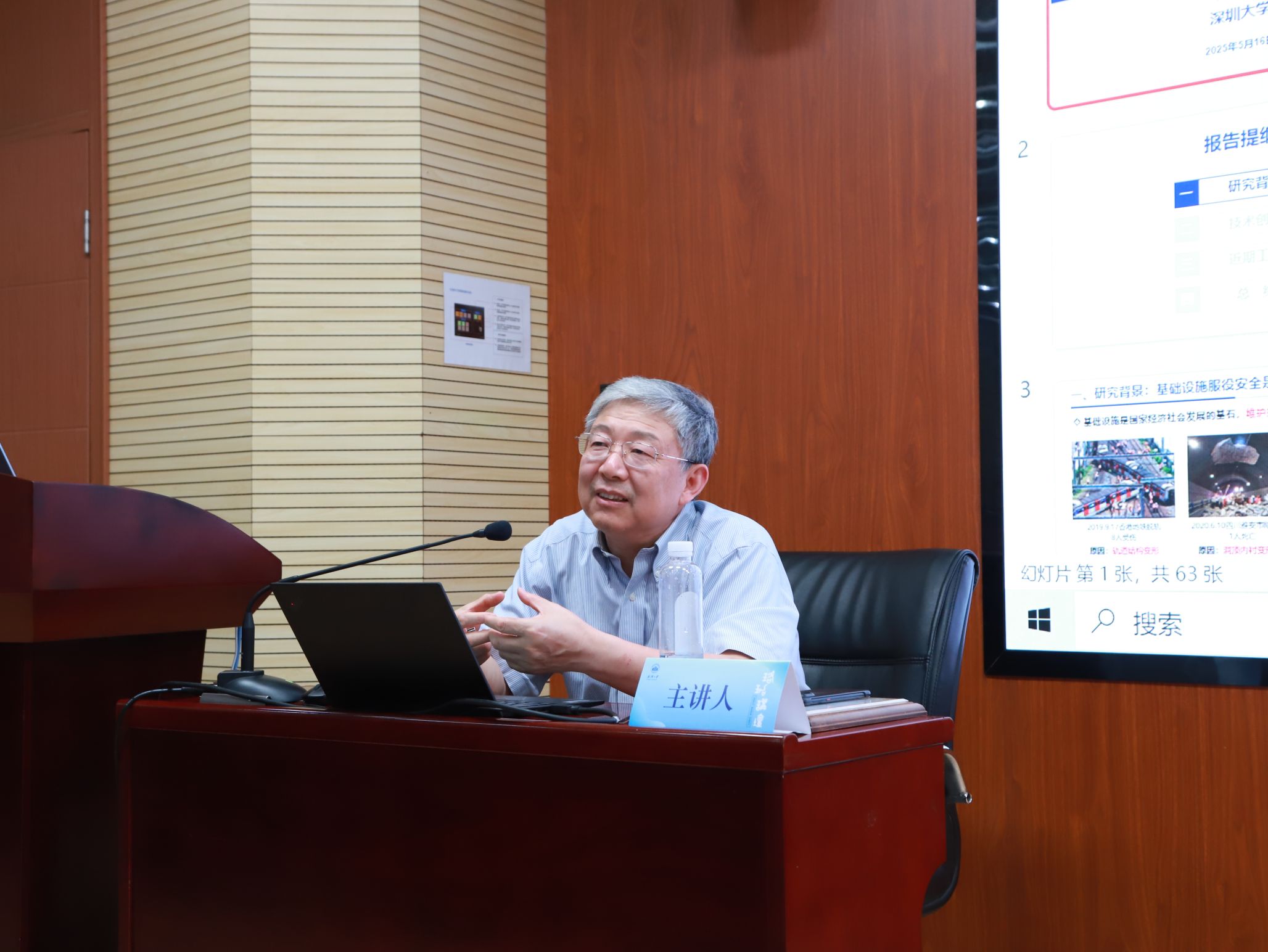 在近两小时的学术报告中,李清泉院士系统阐述了基础设施服役状态动态精密测量理论创新和自主装备研究突破。他指出,城市轨道交通、高速铁路等重大基础设施的运营安全是国家重大需求,变形测量面临“测快、测全、测准”挑战,团队在动态时空基准建立与维持、多源多尺度数据配准与融合的基础上,构建动态精密工程测量理论方法,在瞬时变形、表观变形和内部变形测量技术上取得开创性突破。李清泉院士详细介绍了团队发明研制的自主测量装备,包括全断面三维激光检测车、四足移动三维测量系统、管道检测球型机器人等,在测量理论、传感器、测量技术、处理方法以及高端装备方面进行了全链条创新,实现装备自主可控、国产替代和出口海外,研究成果服务青藏铁路、冬奥会速滑馆、深中通道等国家重大工程。李清泉院士认为,未知空间是世界各国竞争的科技前沿和争取制信息权的关键,介绍了团队目前在未知空间自主测绘领域的研究探索。
