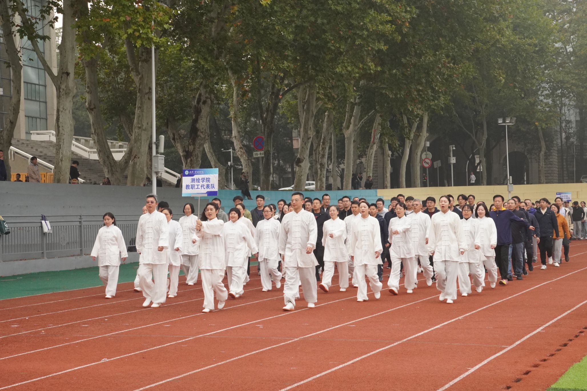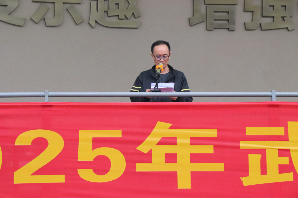 党委书记晏金柱致辞。他表示,举办师生运动会是学院聚力同心、文化育人的重要体现。他指出,在过去的一年中,学院在学科建设、人才培养与科研创新等方面取得的丰硕成果,正是源于全体师生秉持着不畏艰难、勇于攀登的拼搏精神。他提出希望将这种精神延续到运动场上,鼓励师生在忙碌的工作和学习之余,走出办公室、走出教室、走向操场,在运动中享受乐趣、增强体质、锤炼意志,进一步弘扬团结协作、公平竞争的体育风尚,共同营造积极向上、充满活力的学院文化氛围。