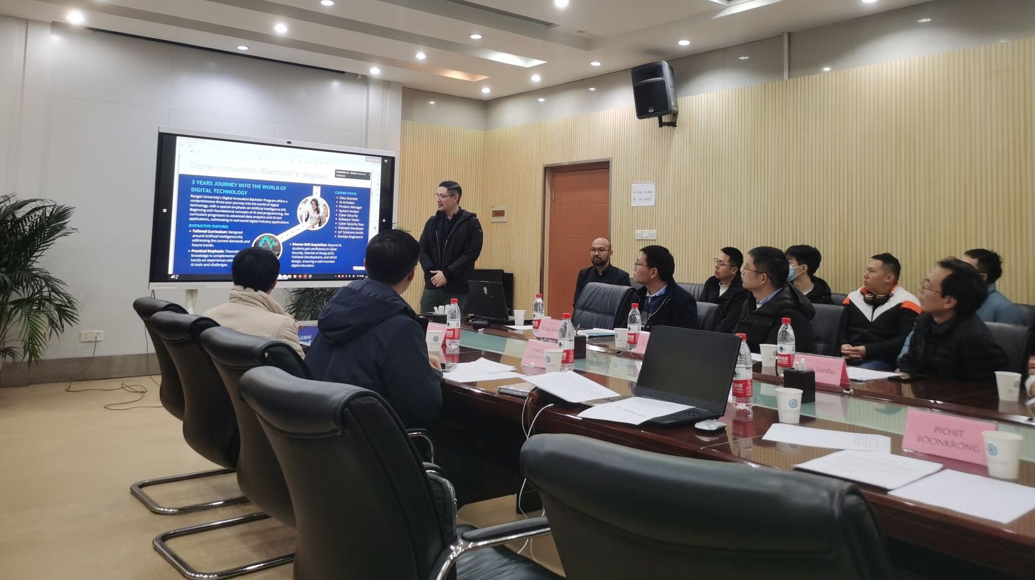 李星星教授代表学院对兰实大学代表团的到来表示了热烈欢迎,并对学院的基本情况进行了简要介绍;Dr.Parkpoom Chaisiriprasert团队对兰实大学的办学理念、人才培养、科学研究以及在人工智能研究等方面的情况进行了系统介绍;赵建虎教授代表学院和海洋研究院对91大神 海洋测绘团队建设及取得的相关科研成果情况进行了介绍。