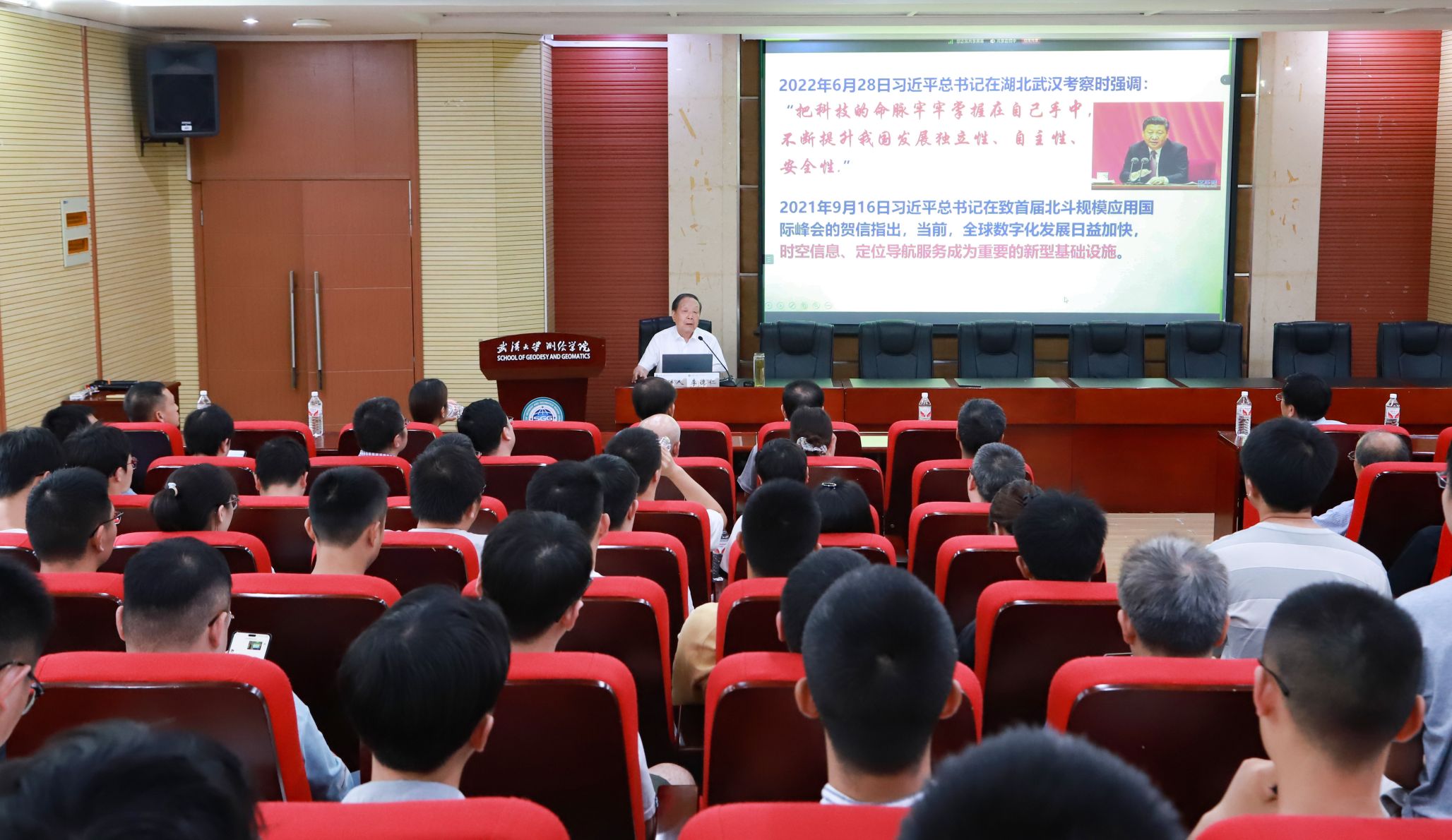 2024年9月19日,91大神 开展弘扬科学家、教育家精神学习教育活动暨坚白高端论坛,特邀中国科学院院士、中国工程院院士、国家最高科学技术奖获得者李德仁教授,为学院师生带来了题为“论无处不在的时空智能”的精彩报告,活动由院长姚宜斌教授主持。