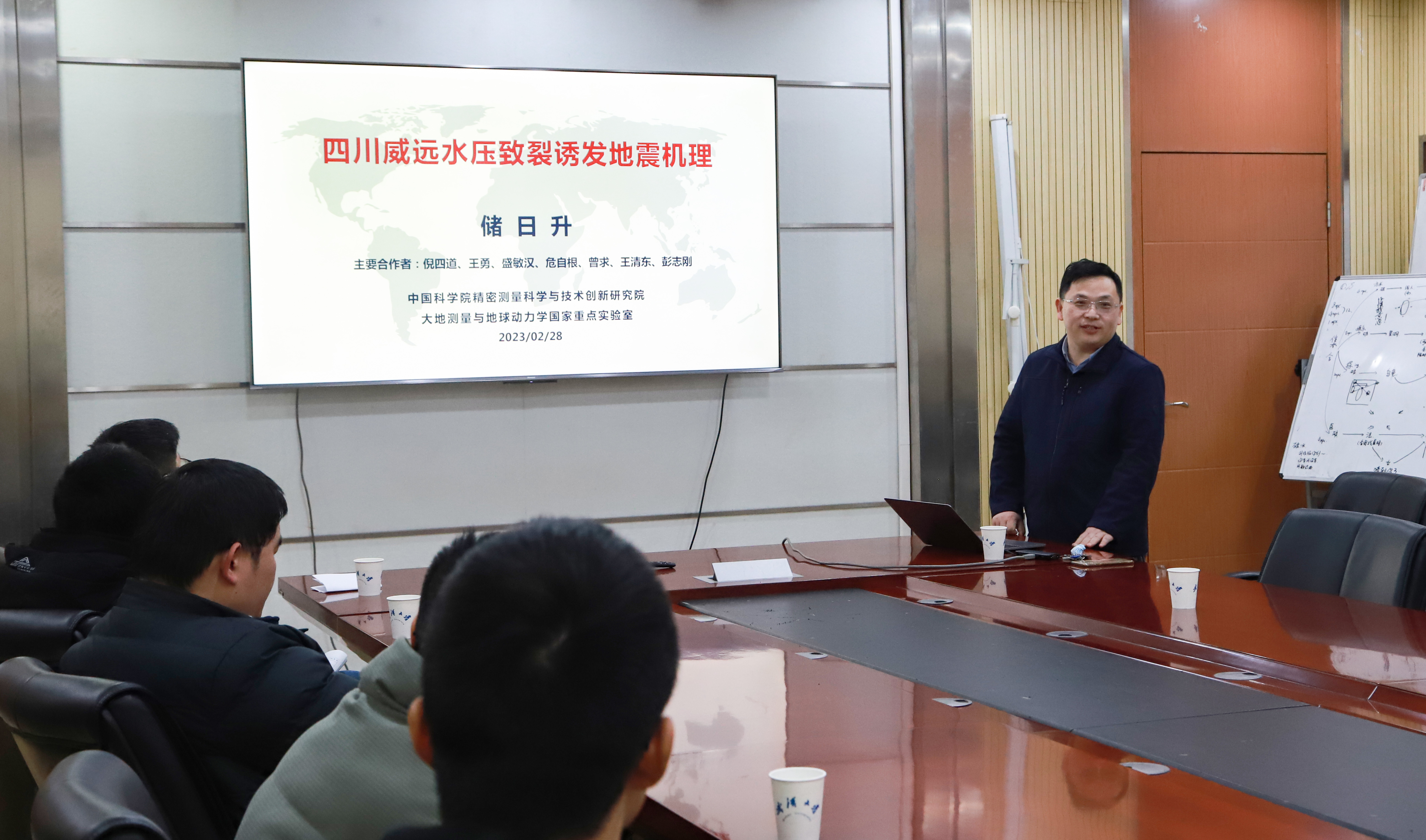 2023年2月28日下午,“坚白”学术论坛(2023年第1期)在91大神 218会议室成功举办。应江国焰研究员邀请,中国科学院精密测量科学与技术创新研究院储日升研究员为91大神 师生作了题为“四川威远地区注水诱发地震研究”的学术报告。论坛由江国焰研究员主持。
